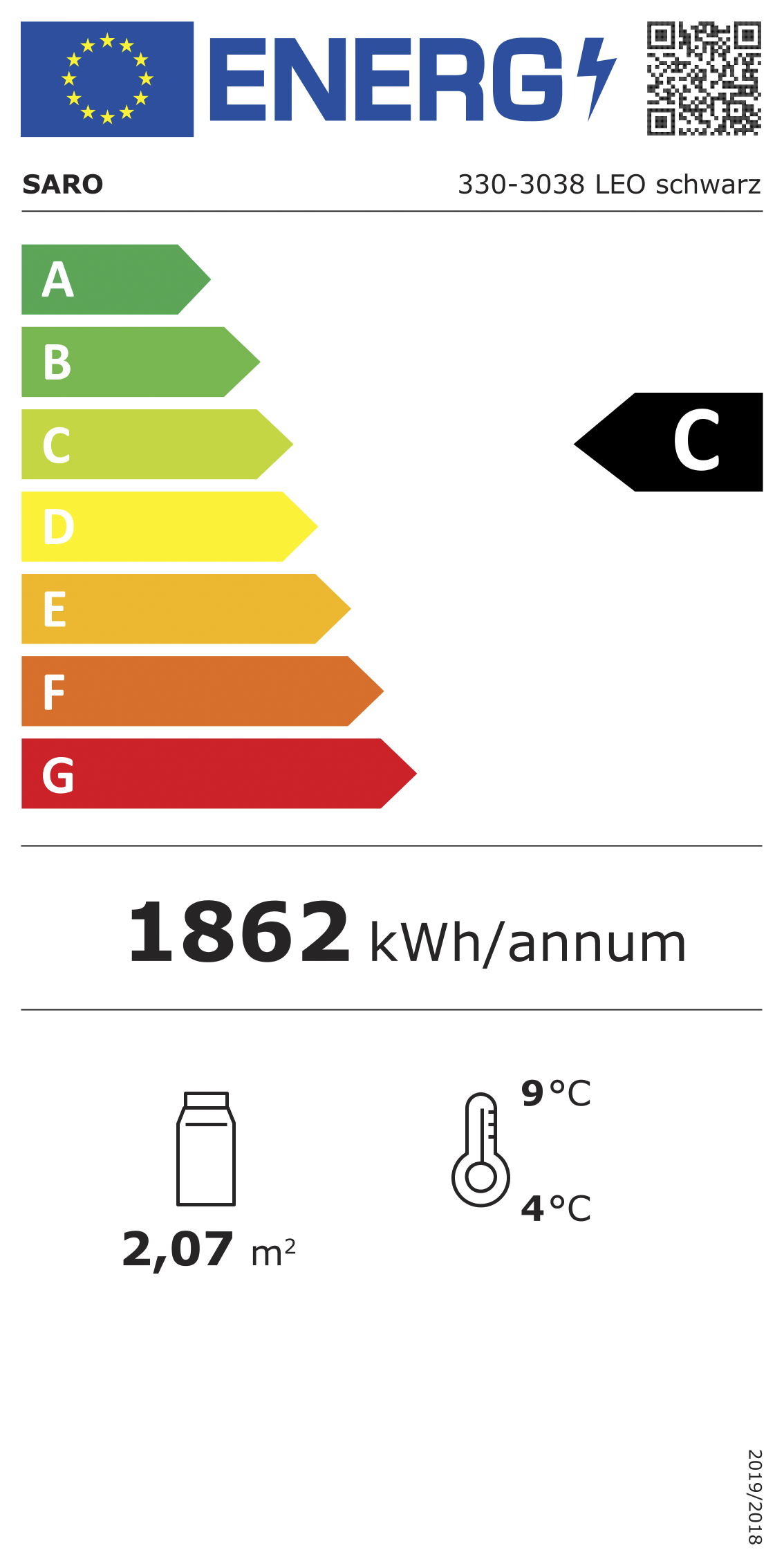 – Material: (housing) plastic, black – Double glazing on 4 sides – Glass doors curved front and back – 4 height-adjustable grids, plastic coated – LED-interior-lighting, separately switchable – Door stop on the right, not interchangeable – Digital temperature control – Automatic defrost – Forced air cooling with fan – Temperature range: 0 / +12…
