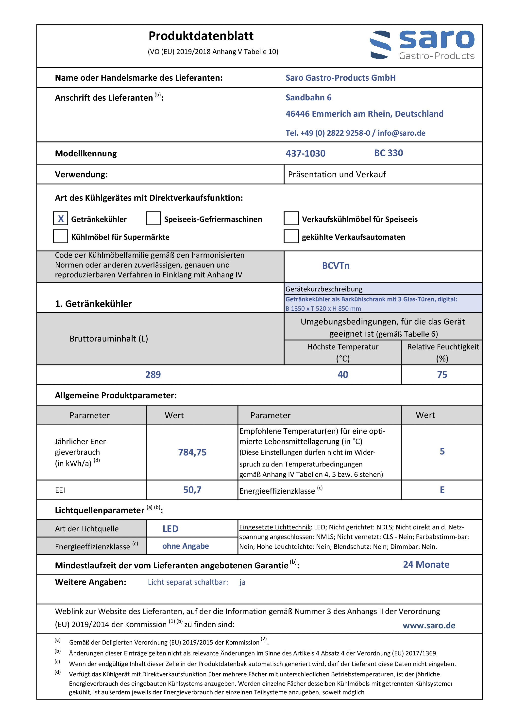 Hersteller: Saro Gastro-Products GmbH - Sandbahn 6 - 46446 Emmerich am Rhein - DEUTSCHLAND / GERMANY - info@saro.de - www.saro.de